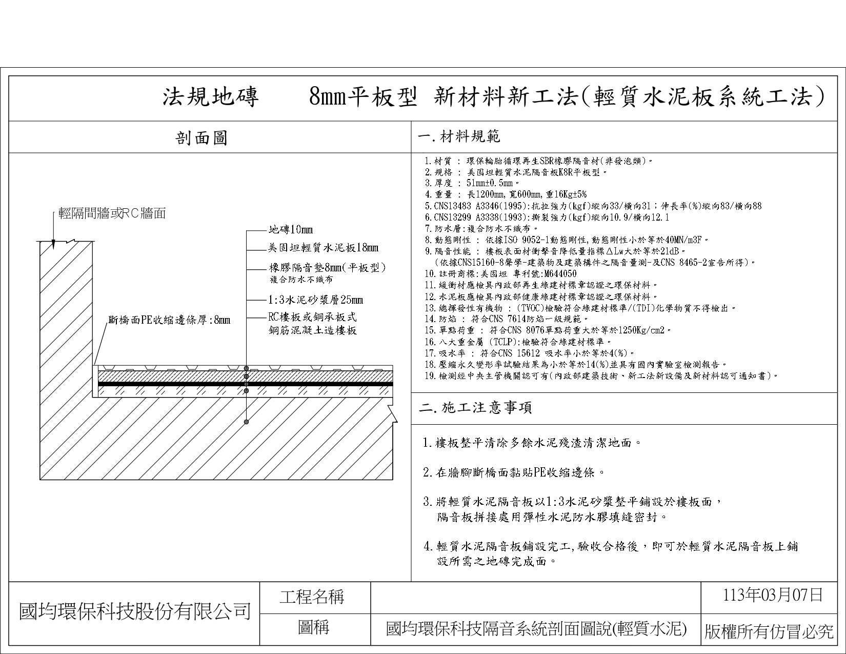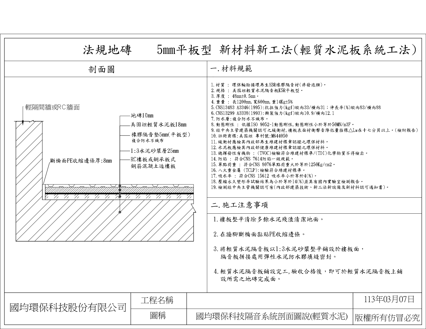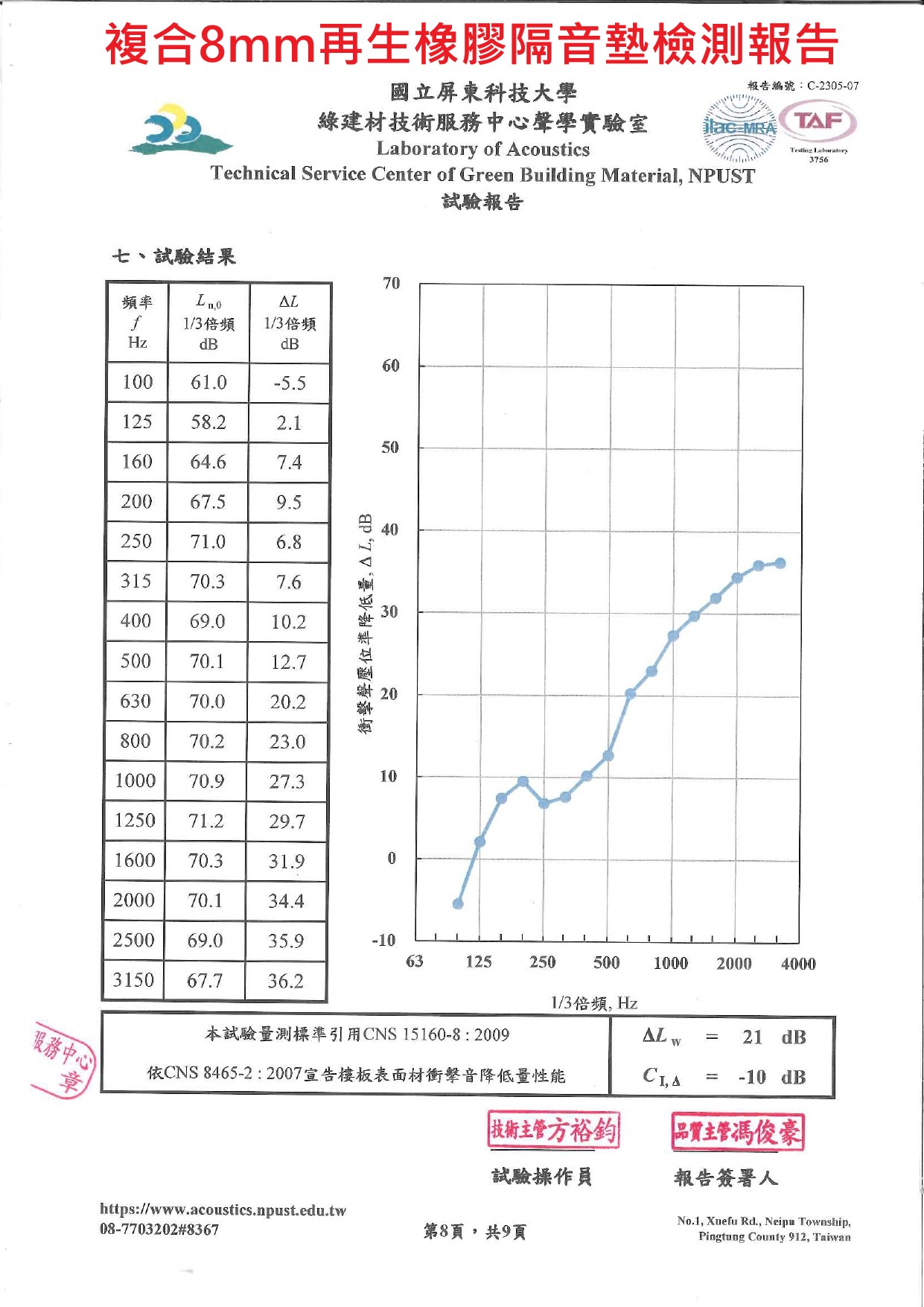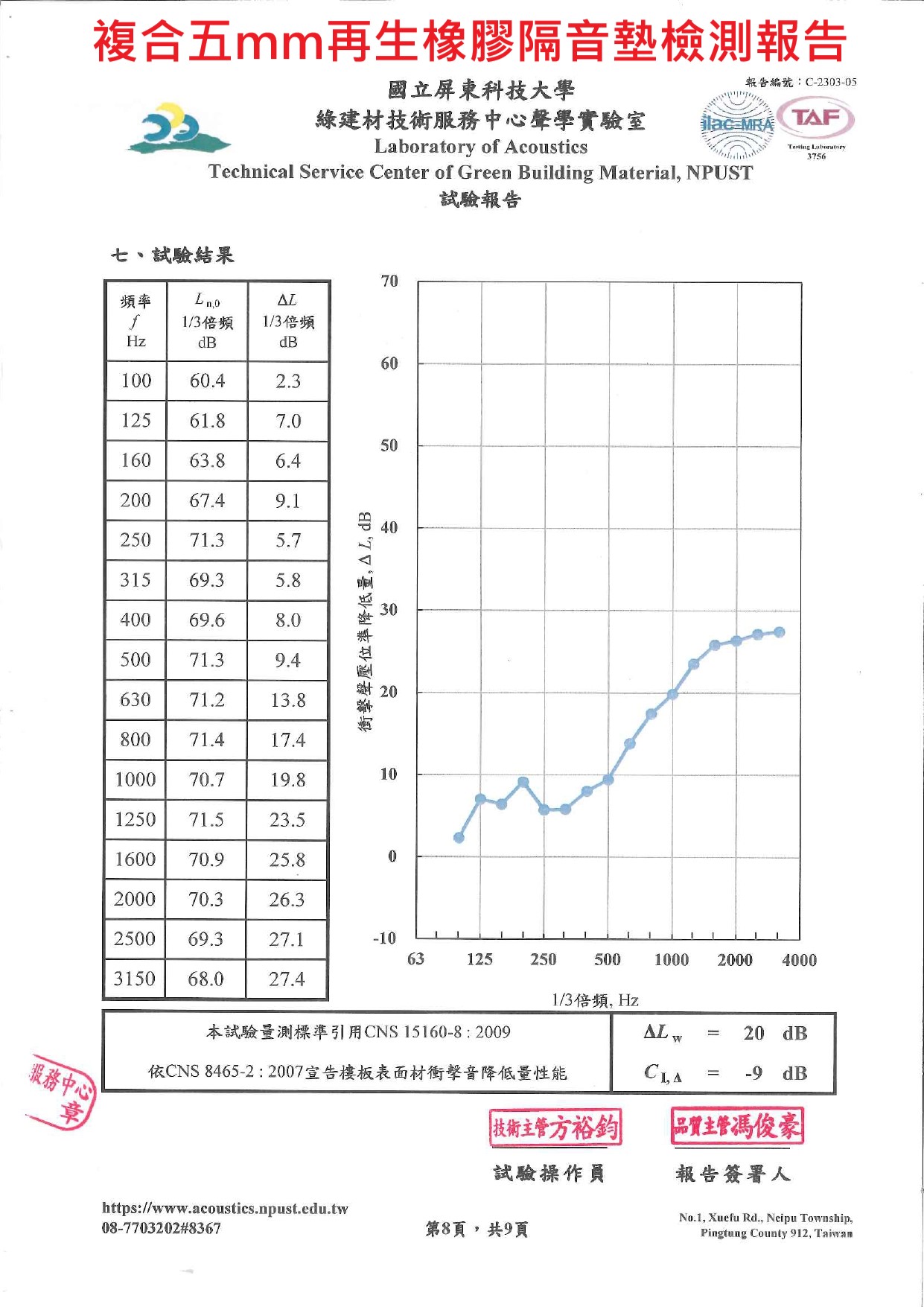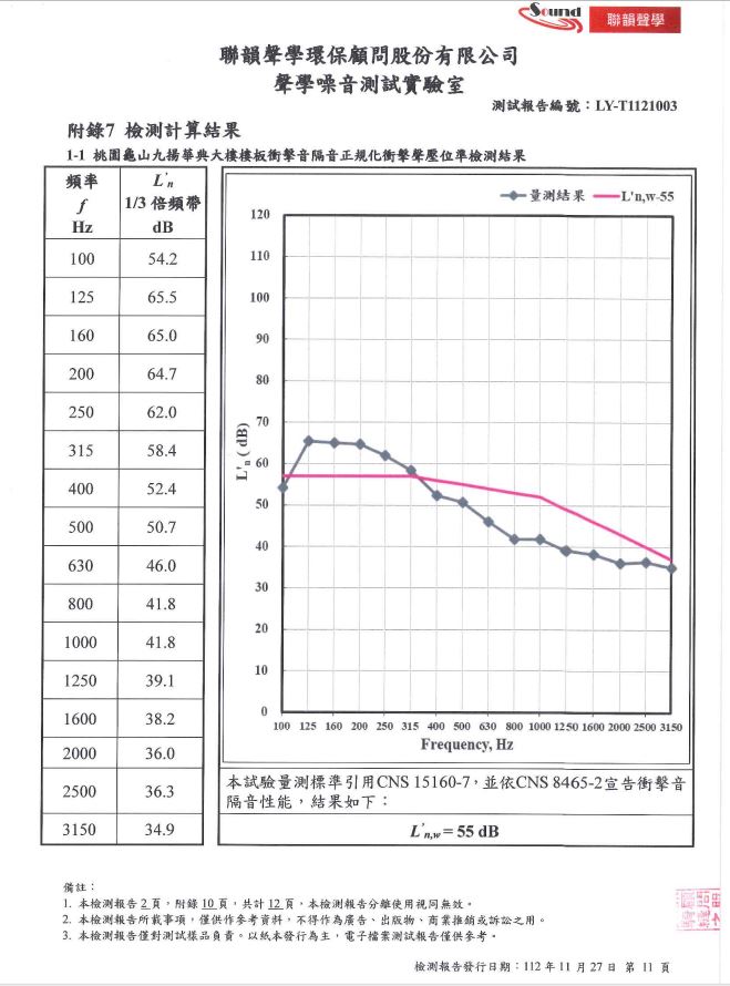 CNS8465-2 樓板衝擊音指標 L'n,W 55dB