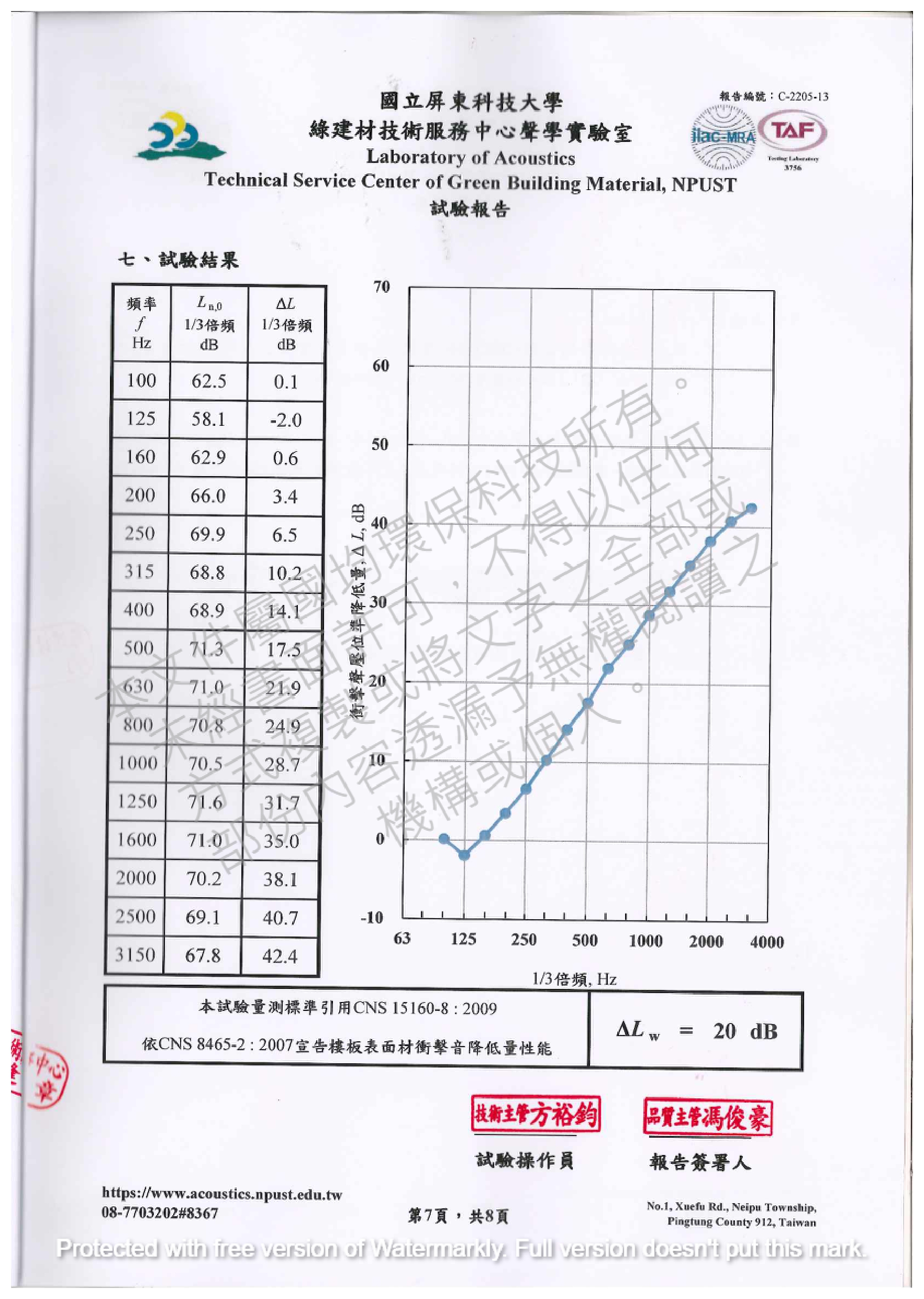 衝擊音:△Lw=20db(CNS8465-2)